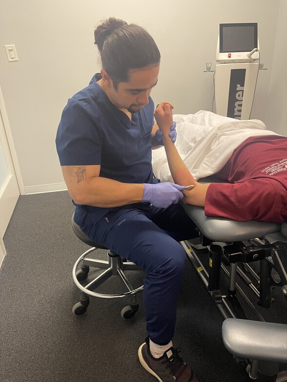 - Pain when accelerating the arm forward, just prior to releasing a ball.